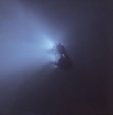 Now things begin to happen to the comet. The warmth of the sun begins to melt ices on the surface. The warmth penetrates the rock and taps the frozen springs of gases inside. Jet’s of gas erupt from the surface. What had been a frozen landscape becomes like a geyser field in Yellowstone Park. The nucleus is suddenly cloud covered in a haze we call the Coma.