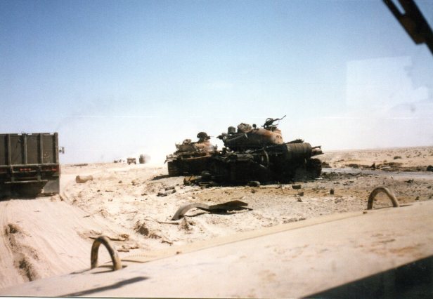 Ruined Iraqi tanks. We’re moving carefully. Not all the mines were Anti-Personnel.