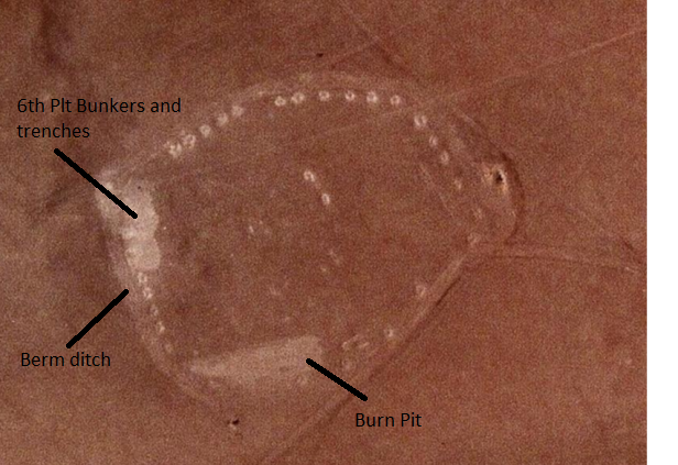 I’ve gotten up on Google Earth and looked at the imagery of where I “think” we were. I found what might be the perimeter of our camp (the engineers dug a ditch around it). I’m not finding any of the fortifications we made. I suspect they were bulldozed over shortly after we left. After all, driving into a hole in the ground can hurt.