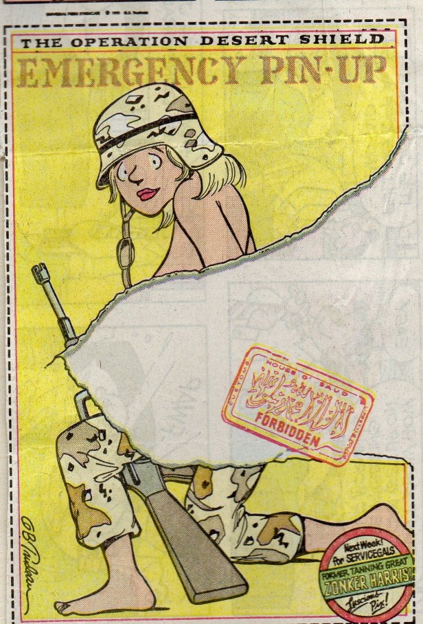 Very much aware of this, the artist and author of Doonsbury, Gary Trudeau, took a shot at the censorship. He drew a picture of girl wearing a helmet and posing with an M-16. She was obviously topless but that part of the picture was ripped out.