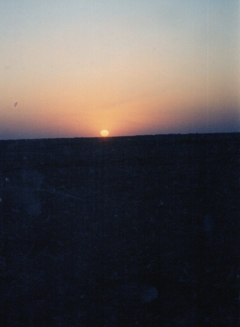 The night before, we’d set up our perimeter. It was raining. You haven’t seen rain till you see it in the desert. The area gets very little water. It seemed that whatever it got on a yearly basis was delivered all in one night. I remember walking to another vehicle in the dark rain. The ground was so hard packed that the water just wasn’t seeping in.