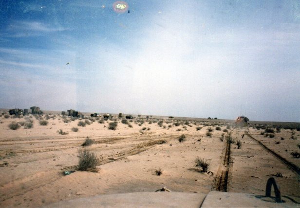 The Engineers had opened paths through the minefield for us. Using M1 tanks with a rotating drum of chains, they had driven through them. The chains beat the ground and detonated anything they hit. The mines were about the size of a frozen juice can. They were too small to present a danger to the tanks.