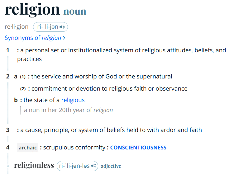 The Webster definition of religion: