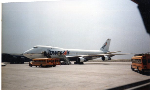 When we reached the Airport, there were several aircraft waiting. One was a white Tower Airlines 747.