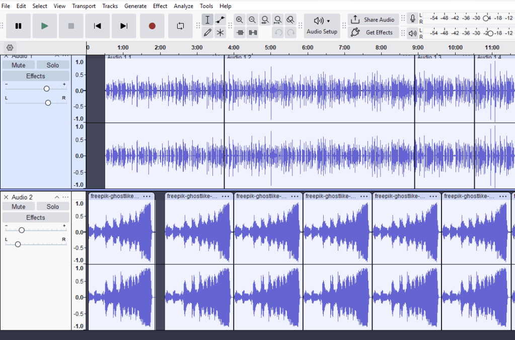 My recording software is Audacity. It’s written for Windows, MacOS, and Linux. Just download the version you want and install it. Good news, it’s free. There’s a good manual. I recommend you read it, but have a good cup of coffee. The manual is boring as watching paint dry. But on the plus side, there’s a ton of good videos out there on how to use it.